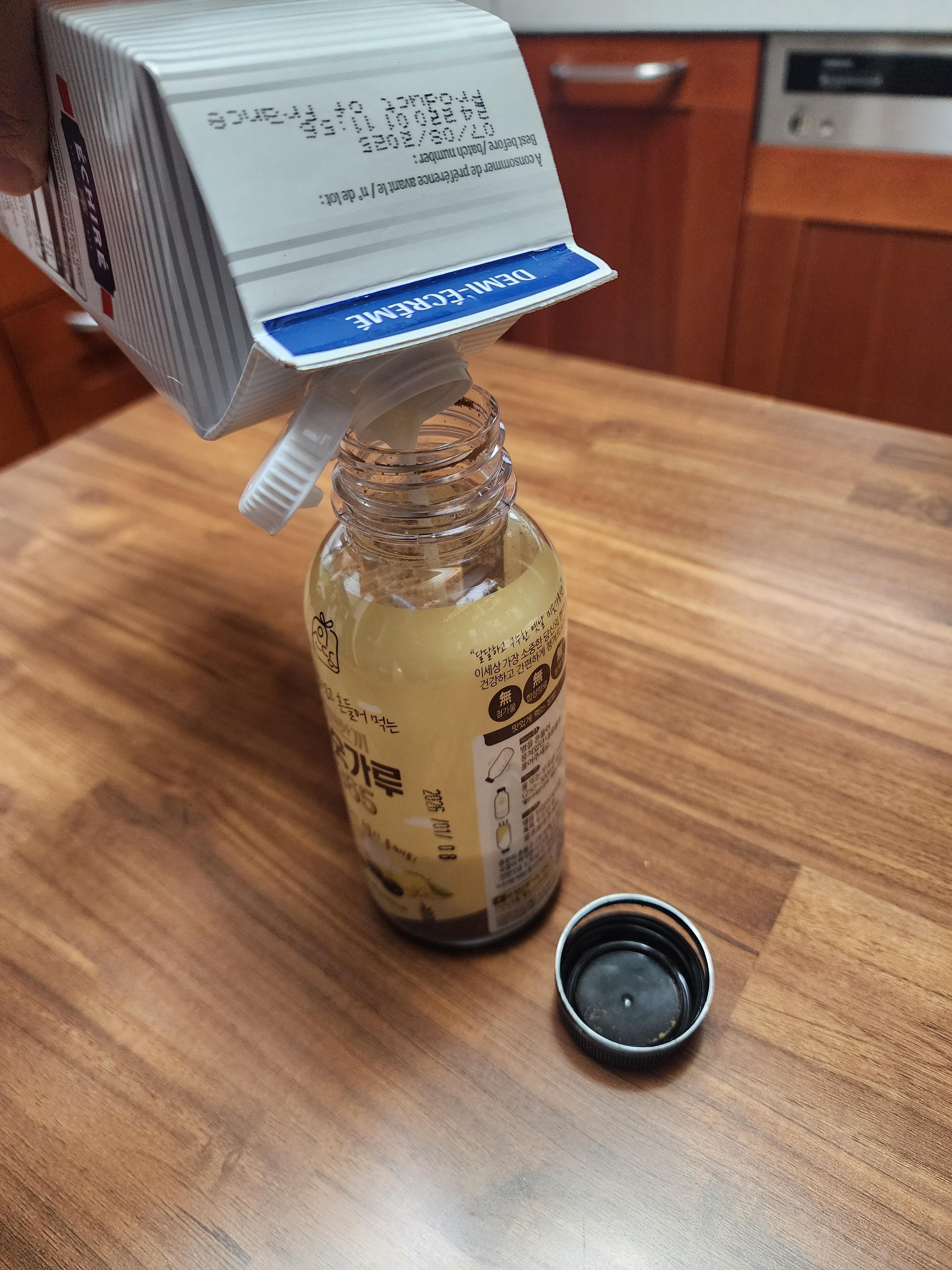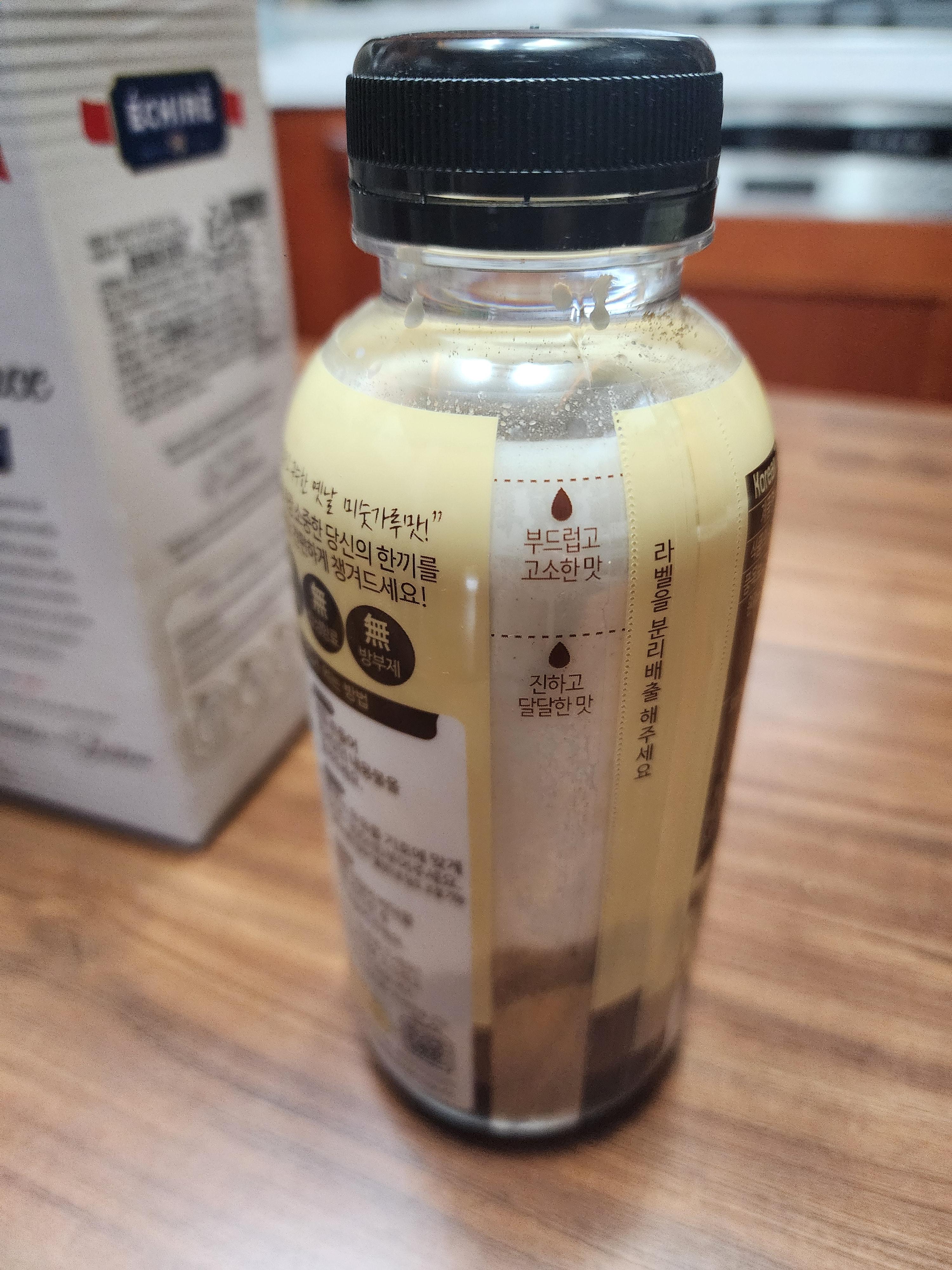 자~ 우유를 150~300ml 부어주구요. 병을 뒤집어서 바닥을 톡톡 두드린 후 잘 흔들어 주기만 하면 됩니다.