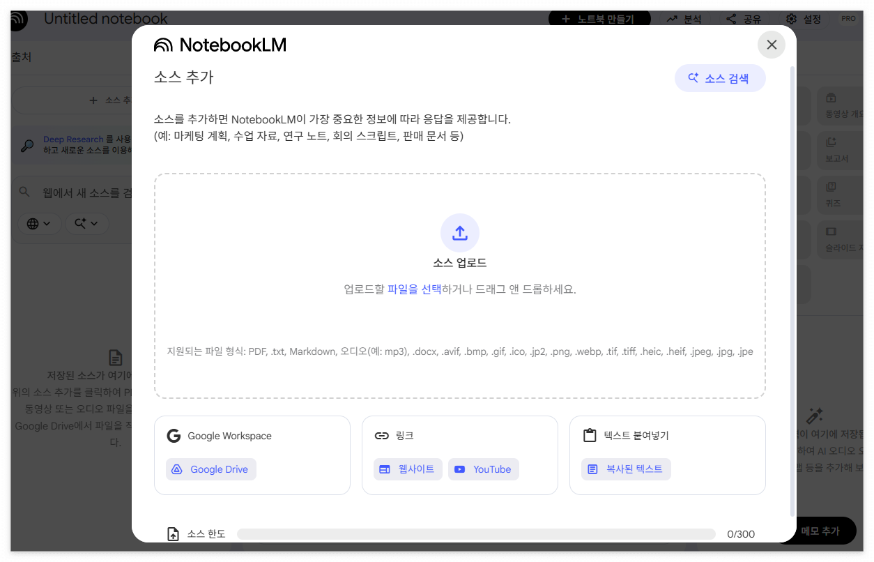 ② NotebookLM 사용해 보기 → 새로만들기 → 소스 업로드에 이미지를 넣어줘.