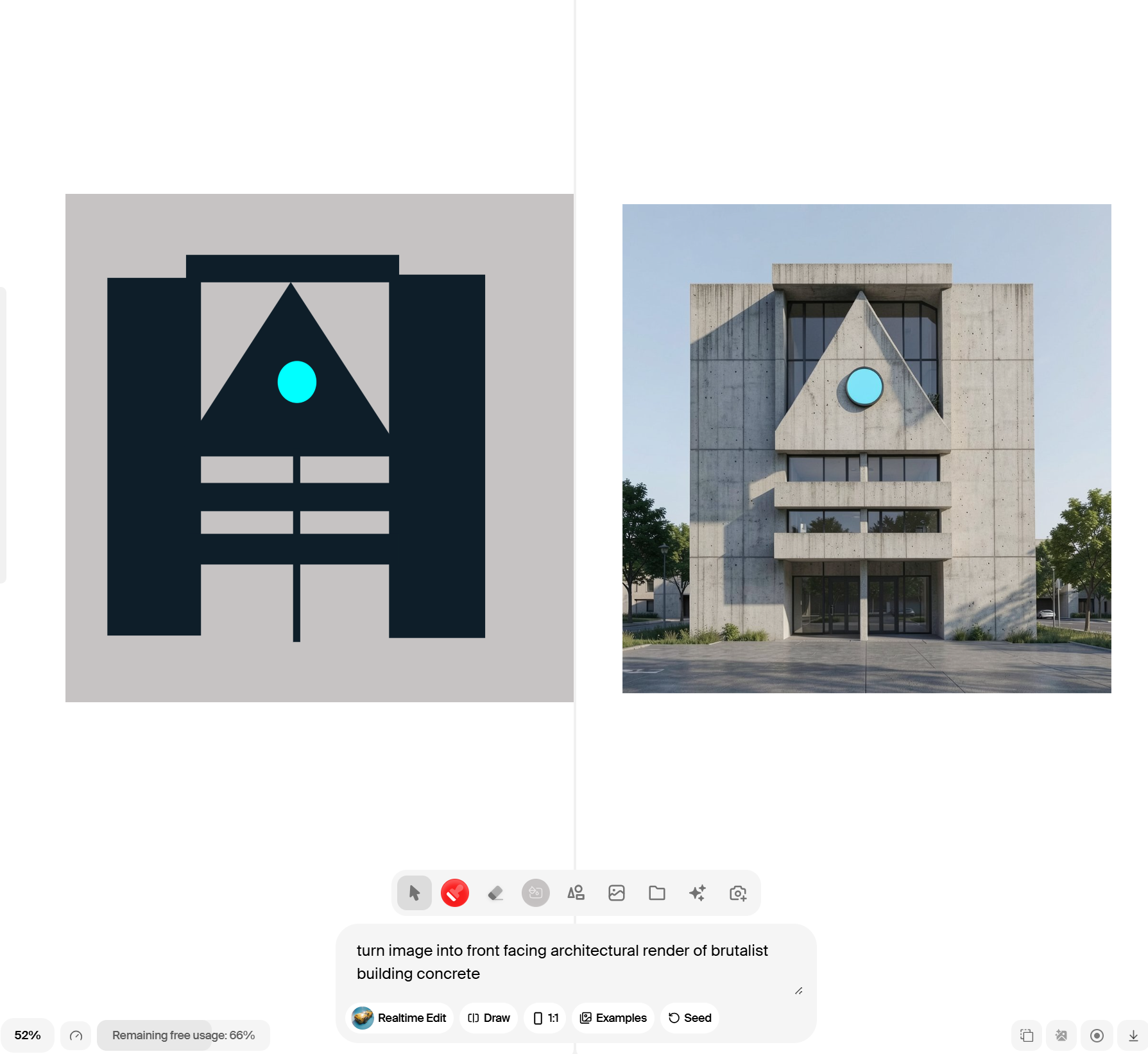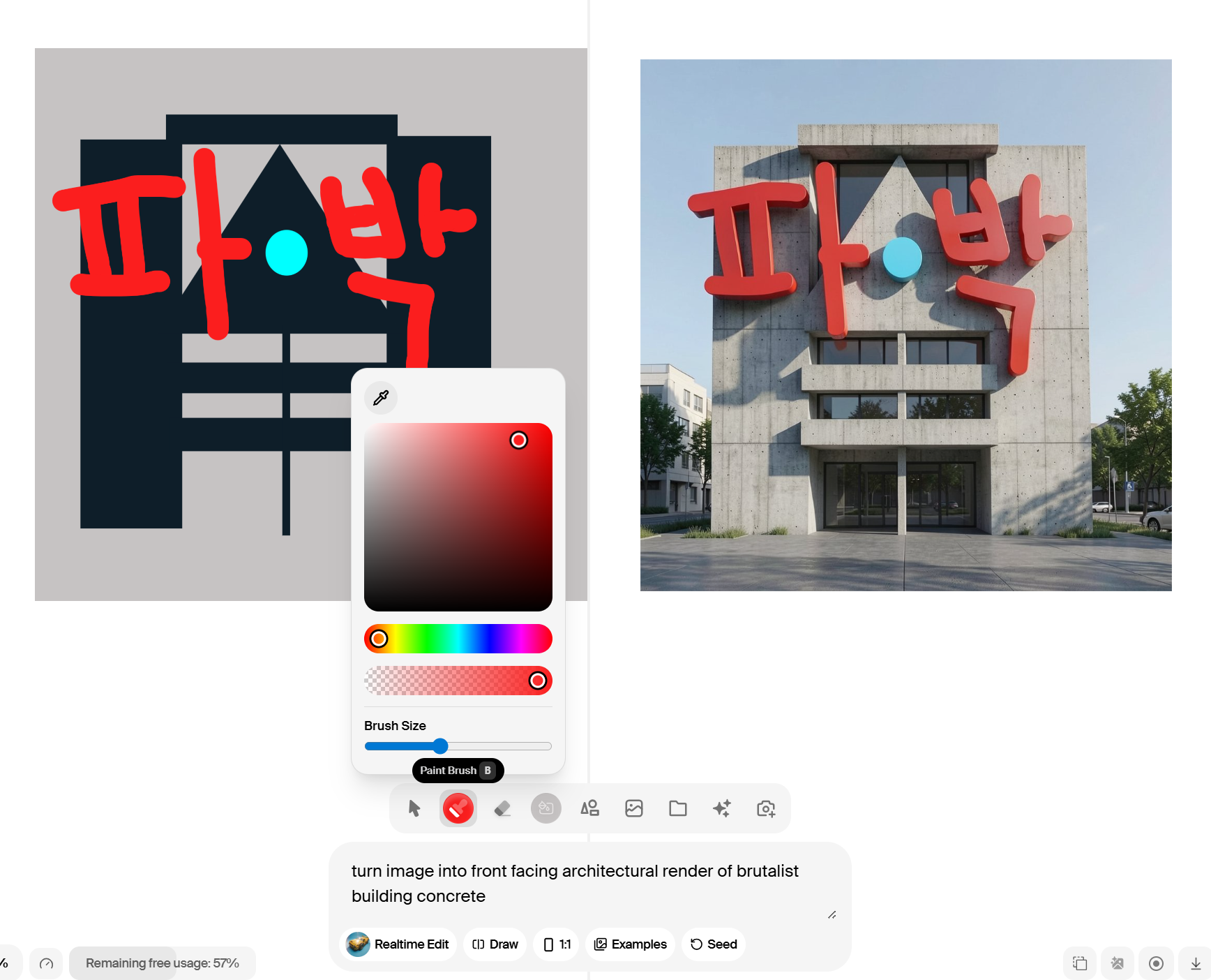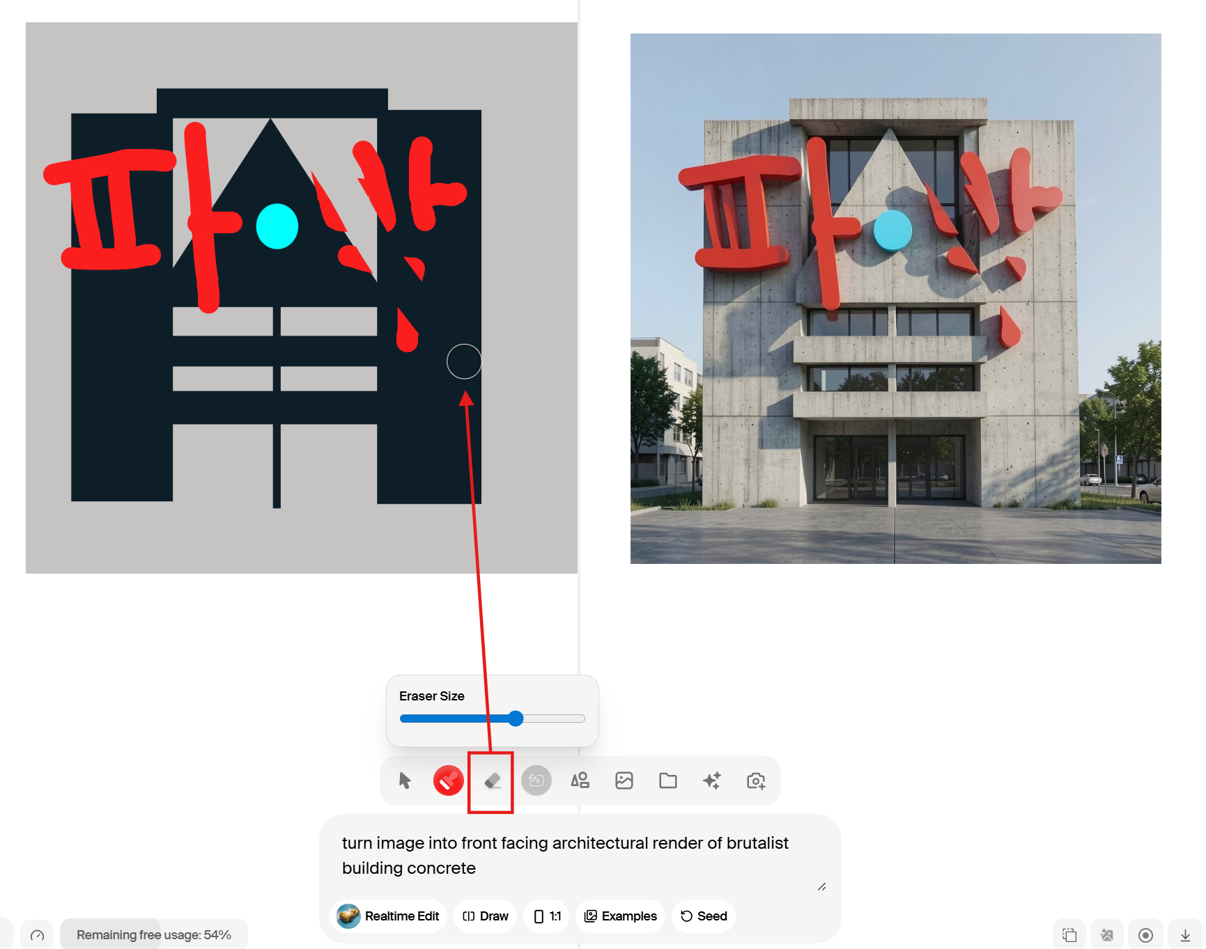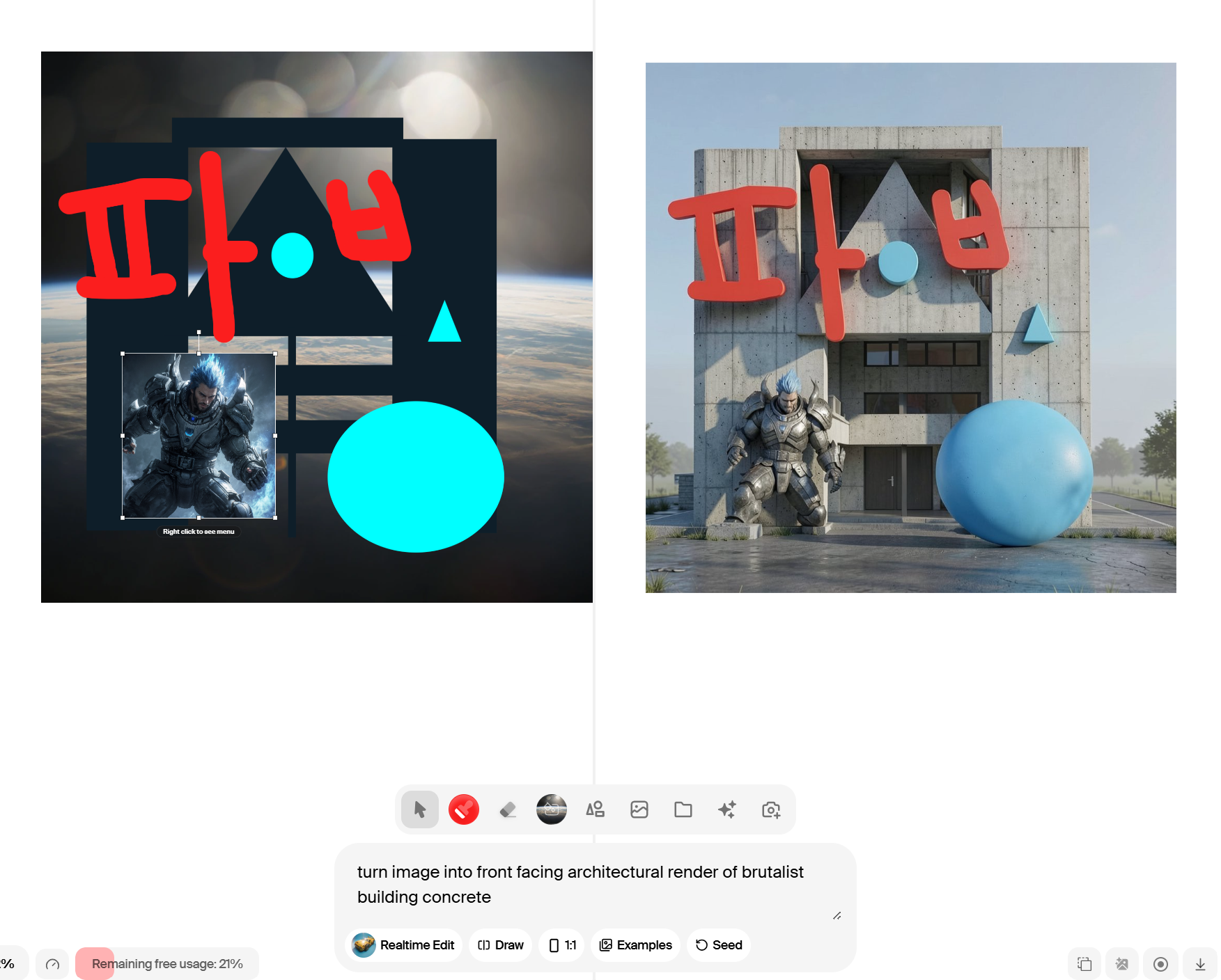 3. 실시간 인터랙션 – 미드저니처럼 한참 기다렸다가 결과를 보는 방식이 아니라, 캔버스에서 라인을 그리거나 색을 칠하면 AI가 즉시 반응해. 컨셉 아티스트나 디자이너에게는 스케치를 즉석에서 완성 이미지로 변환하는 마법 같은 경험이야. 다른 플랫폼들은 결과물이 나올 때까지 기다리는 시간이 길고 수정 과정이 번거로운 경우가 많지.